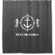 A beautiful shower curtain with your personalized boat name, family name or other desired text. Featuring a custom designed nautical ship anchor and seahorse emblem. White on stylish sea gray or easily change the background color to match your current decor theme. Perfect for your vacation beach house.