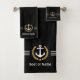 Your Boat or Name Anchor Gold Laurel Stripes Black Bath Towel Set