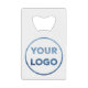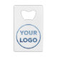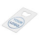 Increase your business marketing reach with useful swag for your customers with a credit card style bottle opener featuring your company logo on each side. Replace the sample logo with your own in the sidebar. Your logo can be in colour or black and white.