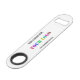 Custom Fonts and Colors - Personalized Bar Key with Your Company Logo Name Website or Custom Text Promotional Business Bottle Openers Gift - Add Your Logo - Image - Photo or QR Code / Name - Company / Website or E-mail or Phone - Contact Information / Address / More - Resize and Move or Remove / Add Elements - Image / Text with Customization Tool. Choose / Add Your Favorite Background and Text Colors / Fonts / Size. Please see my others projects / designs. You can also transfer this designs to more than 1000 Zazzle products. Please use your logo - image that does not infringe anyone's Copyright !! Good Luck - Be Happy :)