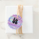add your black or dark business logo to this simulated purple pastel rainbow Iridescent simulated Holographic liquid faux foil hangtag, and chose from white cotton twine, brown natural jute twine, or none. this template also allows for ink printed text on the back