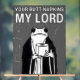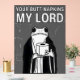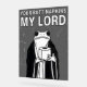 Cute bathroom design "Your Butt Napkins My Lord" design depicts a watercolor illustration of a frog wearing a cloak and holding a roll of toilet paper. This gray, black, and white washroom design makes a nice gift for anyone who likes frogs and funny toilet posters.