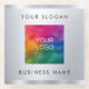 Your Company Logo Here Faux Silver Metallic Look Glass Coaster