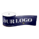 Custom 3" wide satin ribbon, printed with your company logo and perfect for everyday packaging and corporate gifts. The template is set up ready for you to add your logo, which is repeated at regular intervals along the ribbon. Simple and stylish on a navy blue background, which you are free to print in a different colour if you wish. (just click customise and add a background colour). This design is best suited to elongated horizontal rectangle or oval logos. For narrower ribbon or for square or round logos, please browse our collection.