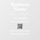 A white business name branding window decal and window cling featuring your business name, slogan or tagline, phone number, website, custom QR Code and customised social media icons . A personalised shop window cling perfect for shop windows and storefronts. Perfect for a business shop owner who would like decorate their window their business name and branding.