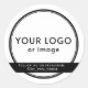 Elevate your business branding and marketing with these classic stickers, easy to customise with your photo or logo and any text of your choice in the black and white strip.