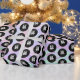 Easily personalise this 10lb wrapping paper with your own White or light coloured business logo. No minimums or set-up fees. The background is a simulated metallic glitter texture print, with a pastel iridescent ombre rainbow colour gradient.