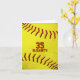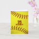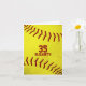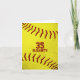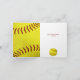 This simply designed softball themed greeting card features the image of an abstractly oversized yellow softball on the front and inside left of the card - customize the player's name and jersey number on the front and your custom message above a small softball on the right inside of the card - by katz_d_zynes