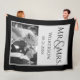 This custom keepsake blanket features a black coloured background border with a soft, off white grey centre portion. A sample black and white family photograph is featured in the bottom portion which you can personalise to include your own custom photo or image. A sample name and personalised message is printed above the photo. It is a perfect wedding gift for a newlywed married couple. You can add their "Mr." and "Mrs." titles with their last name and wedding date.