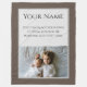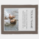 This custom keepsake blanket features a brown colored background border with a soft, off white gray center portion. A sample family photograph is featured in the bottom portion which you can personalize to include your own custom photo or image. A sample name and personalized message is printed above the photo.