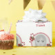 Custom photo template design featuring Destei's original illustration of two red and white striped Christmas candy cane treats decorated with a red bow and a Christmas holly or Common holly plant. The photo is framed by a red border that is made of two lines. Under the image there is a personalizable text area for a name or other custom text. Make any gift feel extra personal by having the gift receiver's photo and name on the wrapping paper!