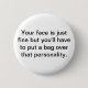 Your face is just fine but you'll have to put a bag over that personality.