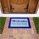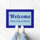 Doormat that you can customise to put the name of your family and with welcome texts. Design colours are light blue background, dark blue texts and dark blue border. Please check the appearance after typing the name of your family. If the appearance is pleasing to you, you can place your order now. If you need to resize and move the texts to fit on this doormat or on other sizes that you will choose, please change in the design tool. You can also change the font style and the colours of this doormat in the design tool. Doormat to decorate your home entrance.
