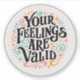 Your feelings are valid mental health support emotional validation emotions awareness quotes groovy retro vintage aesthetic gifts sticker accessory room decor.