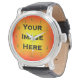 This custom watch template is a simple and elegant timepiece design with thin, outlined black numbers that indicate the hour. The fine (2px) bright yellow edges make the numbers stand out nicely against a wide variety of colours.