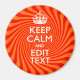 Your personalised Keep Calm saying on a vibrant orange and red swirl decor. A personalised Keep Calm style saying on a one of a kind gift. Humourous or whimsical try on your creative words on two editable lines of text. Remember to use CAPITAL letters for best results.