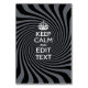 Your personalised Keep Calm saying on a classy black swirl decor. A personalised Keep Calm style saying on a one of a kind gift. Humourous or whimsical try on your creative words on two editable lines of text. Remember to use CAPITAL letters for best results.