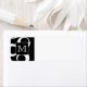 A black and white monogram design. This design features a black and white funky pattern of circle - ring type shapes. There is also a black and white square shape that has a custom monogram initial letter in the middle. The letter is white and can be personalised. This design has a fun retro look.