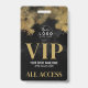 All Access Your Logo Elegant Black Gold VIP Badge. A black and white with gold (not actually shimmer or foil, it's just a colour). Great for fashion shows, concerts, large special events like conferences, speakers, and can even work for a birthday party like a sweet 16, or any other party where you want to make your guests feel special like a New Year's Eve celebration. A simple modern, yet elegant, look with a spot to add your company or even logo up top (if using for a special event, you can use a cute icon instead of the logo). At bottom is a bold serif font mixed with simple typography, with VIP, the event name, date, and 'All Access Pass'. You can change all of the text information and colours of this badge.