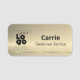 Custom Company Logo Metallic Brushed Champagne Brass Employee Name Tag with Antique Bronze Detail - Easily personalise these staff name tags with your own business logo, employee name, job title, or other custom text. They're plastic and available with a safety pin or magnetic back (do not use magnet with pacemakers). The template features a simulated metallic brushed radial Champagne Brass print and a modern narrow line of simulated antique bronze. No minimum order quantity and no setup fee. This style includes one thin line of gold at the bottom
