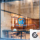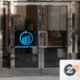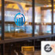 A simple custom blue business logo vinyl window cling decal sign template in a modern minimalist style which can be easily updated with your company logo!