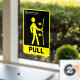 A simple custom Pull The Door Window Cling template in a modern minimalist style which can be easily updated with your Custom Text & company logo.