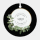 The ornament features a sleek and modern design, with a sophisticated wreath in green, white, and gold encased within a stylish black circle frame. The elegant colour combination exudes professionalism and elegance, making it the ideal ornament to represent your brand.