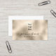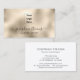 The front of this business card for makeup artists features your business logo on a luxurious champagne-coloured metallic foil background. Your name on front of the card is in elegant script typography with flourishes at both ends of your name (don't remove the boxes on the name portion of the template). It is very easy to replace the example logo by uploading your own on the personalisation template, where you can also revise all the text on front and back of the card.