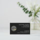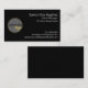 Professional business logo custom branded design on black! This template design has a circular placeholder company logo which you can replace and create your own design by inputting your own logo. In addition there is custom text for the name of staff and employees and their title, role, business address, contact phone number, email, and website, or other text as appropriate. Any custom text can also be removed by deleting it in the personalise this design or editing tool. The design is black with light grey writing on the left side and the logo on the right.
