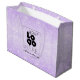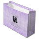 Available in matte or glossy finish, promotional gift bags custom branded with your business logo add a professional touch to your corporate gifts, giveaways, and retail shopping bags while advertising your business. Made by Digiwrap. No minimum order quantity and no setup fee. This bag is set on a pretty pastel purple metallic faux foil glitter dust printed background, ready for your logo graphic.