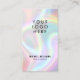 Customise this cool chic modern pastels holographic minimalist two side print business card with a place for your logo and with social media icons on the back. For other icons feel free to contact the Creator. Remove the template "your logo here" image with an image of your logo. Please note that the holographic background is a flat colour print and is not an actual holographic effect foil.