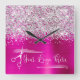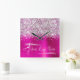 Your Logo Silver Glitter Hot Pink Glam Square Wall Clock