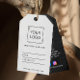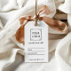 Minimalist white price tags, customisable with your business name, logo, size, price, website, and social media icons.