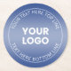 Your Logo w/Editable Blue & White Gradient Round Paper Coaster