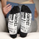 Create a very extremely personalised pair of socks. Your custom name appears all over these socks in a collage of different fonts and lettering styles. Black lettering is set against a white background.