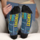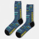 Create a very extremely personalised pair of socks. Your custom name appears all over these socks in a collage of different fonts and lettering styles. Lettering in teal, mint green, blue and yellow is set against a navy blue background.