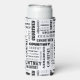 Create a very extremely personalised can sleeve. Your custom name appears all over this tall foam can wrap in a collage of different fonts and lettering styles. Black lettering is set against a white background.