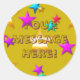 Round sticker has a gold background with colourful star design. Place your custom message into the template. Perfect for school rewards, birthdays, or other occasions.