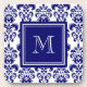 Your Monogram, Navy Blue Damask Pattern 2 Coaster