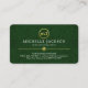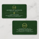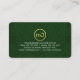 Overleaf, the same emerald grunge design is used. At the top is the gold circle with the monogram followed by your contact details.