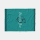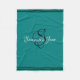 Fancy script monogram fleece blanket in teal colour with white and black typography. Just choose size and add a name or text using the "personalise this template" feature.