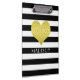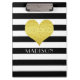 Your Name Black White Gold Heart Pattern Clipboard
