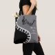 Show your style and love of music with this cool, customisable music themed tote bag. This bag has a large black and white curved piano keys design and a treble clef with trailing music notes on a custom colour background, the default colour on both sides is grey. There is a spot to personalise the front of the bag with your own name or text, the default text is in white cursive print. Just hit the Personalise button to edit or delete the text, or hit the Customise button to change the font, text colour, or background colour. Looks fantastic in many shades, pick your favourite! Makes a great gift or accessory for musicians, teachers, students, school bags, and lovers of band, orchestra, jazz, and piano designs.
