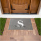 Modern with your monogram initial and name. Textured looking background is artistic in design. Script style typography with large letter and full last name. The perfect outdoor decorating accessory for your home. Grey background colour can be changed to colour of choice.