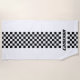 Chequered stripe towel with colours that are fully customisable. Click customise to change the background colour. To change the chequered stripe colours, click customise, select Checkered1.2 layer and change the fill colour. It's the perfect towel for a car enthusiast.