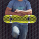 Chequered stripe skateboard deck with colours that are fully customisable. Click customise to change the background colour. To change the chequered stripe colour, click customise, select "Checkered1.2" layer and change the fill colour.