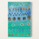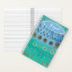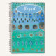 This is a beautifully designed notebook you can personalise with your name. It is decorated front and back with an abstract watercolour design inspired by flowers and fields. It has a bright green and blue shaded background with an abstract design is of circles, blobs, dots and ovals in muted pale ochre. The artwork is original, and only available from The Art of Being Beth.