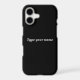 Black phone case that you can personalize by typing your name. You can also change the font style, font color and the phone case color in the design tool. Please check the appearance after typing your name. If the appearance is pleasing to you, you can place your order now. If you need to resize or reposition your name, please adjust in the design tool.