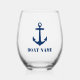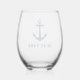Your Name or Boat Name Nautical Anchor Navy Blue Stemless Wine Glass