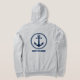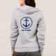 Women's zip-up hoodie with your personalised name, boat name or other text and a custom nautical sea anchor in navy blue on grey. Makes a great gift for any occasion.